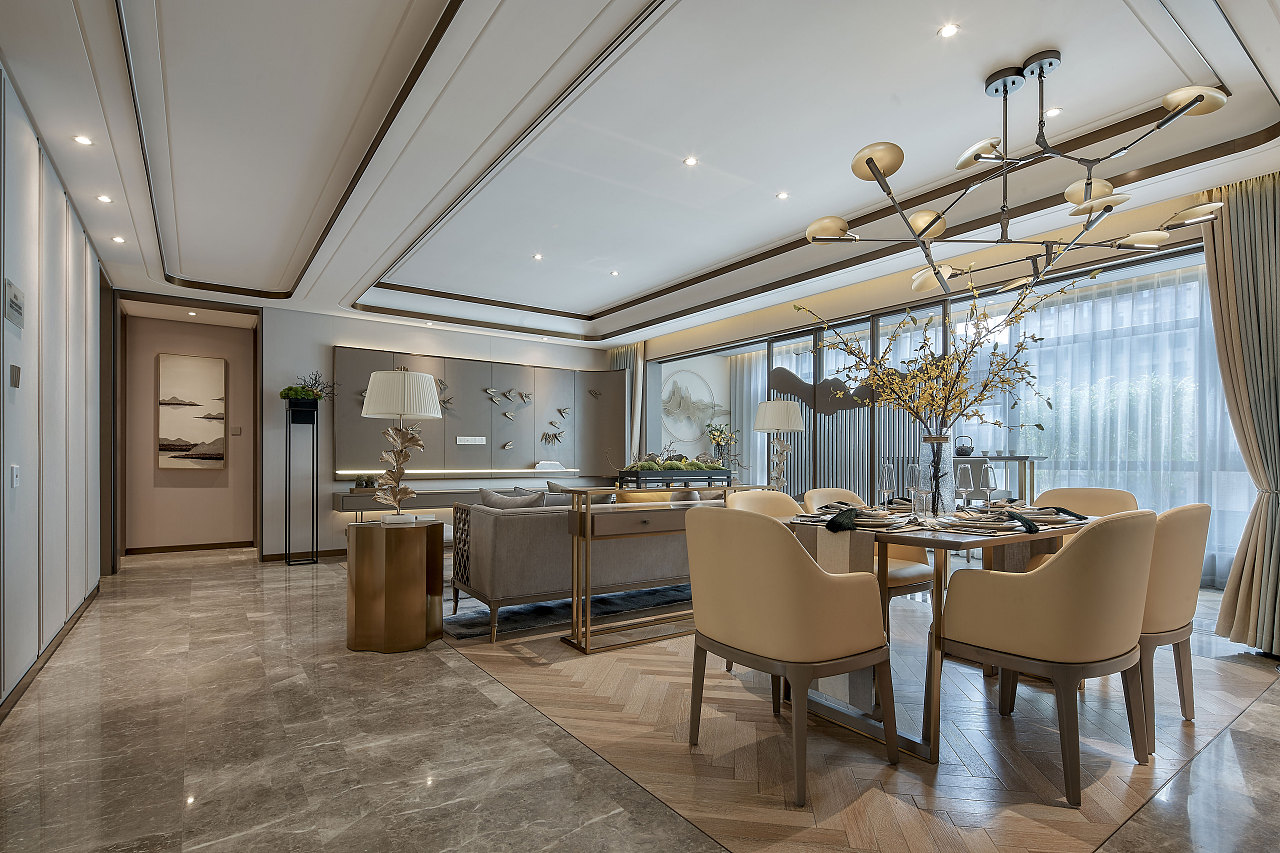 相互聯系的客餐廳,精致的餐具與裝飾品,極富東方韻味的家具,相映成趣。