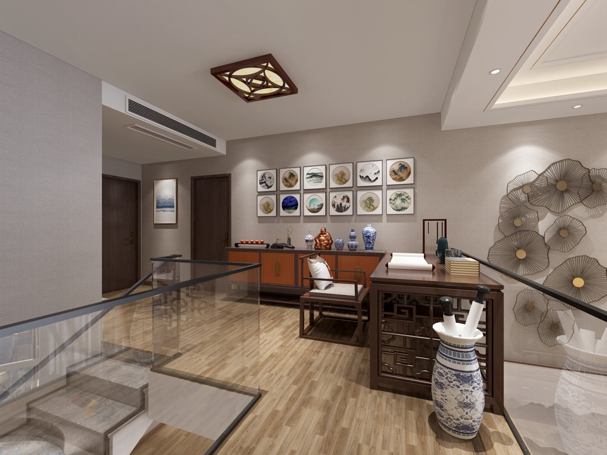 一家四口居住,客戶喜歡新中方風格,要求不沉悶,有書香氣息。