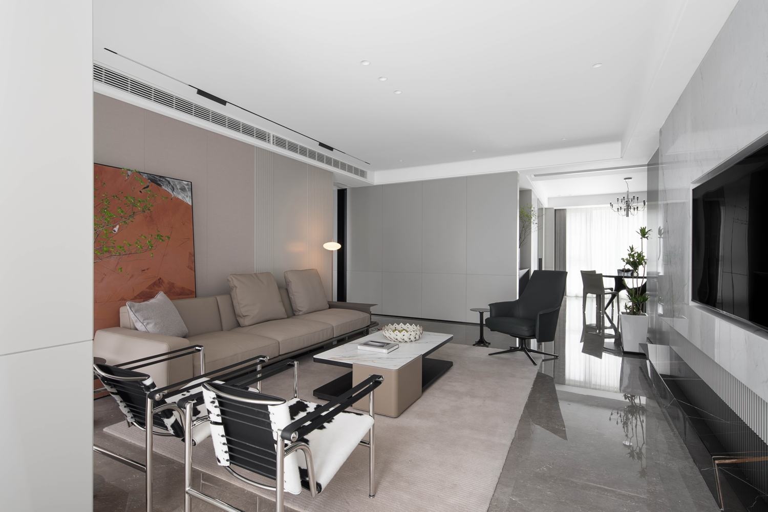 回家首當其沖的儀式感的意義在于身,更達于心。一抹橙色在造型幾案之上久候歸家之人,幾枝綠意從視覺上卸去歸家后的所有累贅與疲憊。由此入戶,從心開始,串聯起無數個生活場景的展開。