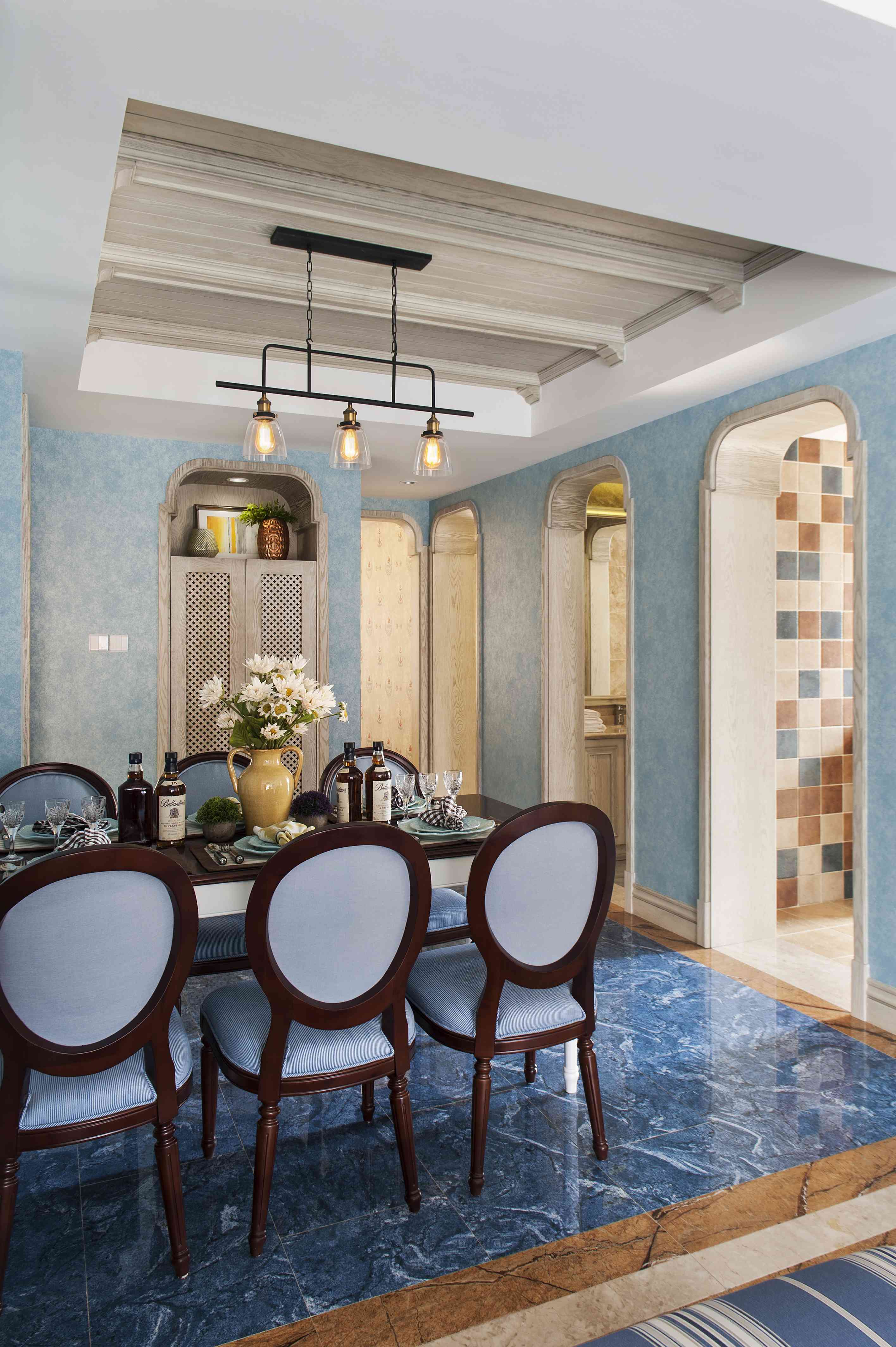 藍色的海岸線、金色的沙灘、充足的光照、乳白色的巖石……對于每一個懷抱美好夢想、向往別樣風情的人來說,地中海猶如一個美妙的、烏托邦般的夢境,引人神往。藍與白不同程度的對比和組合,亦塑造出閑適得近似慵懶,浪漫得不乏寧靜的居家空間。