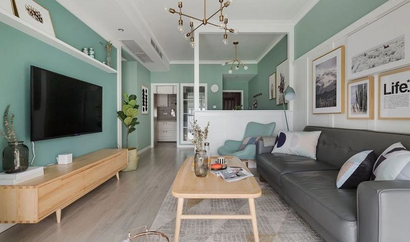 客廳選購可折疊的雙人布藝沙發(fā)床,臨時還能充當(dāng)?shù)木幼】臻g。魚骨拼地板,給空間的帶來層次感,還有一種釋放延伸的效果。電視背景墻區(qū)域沒有做過多的裝飾,簡單的電視柜以及書柜組合,增加家居的靈活性,也方便后期挪動。