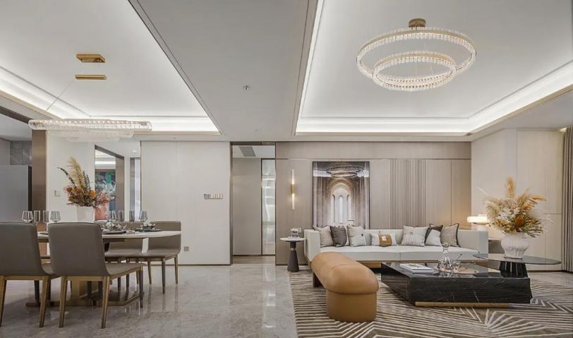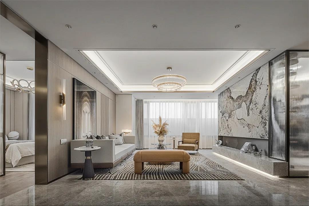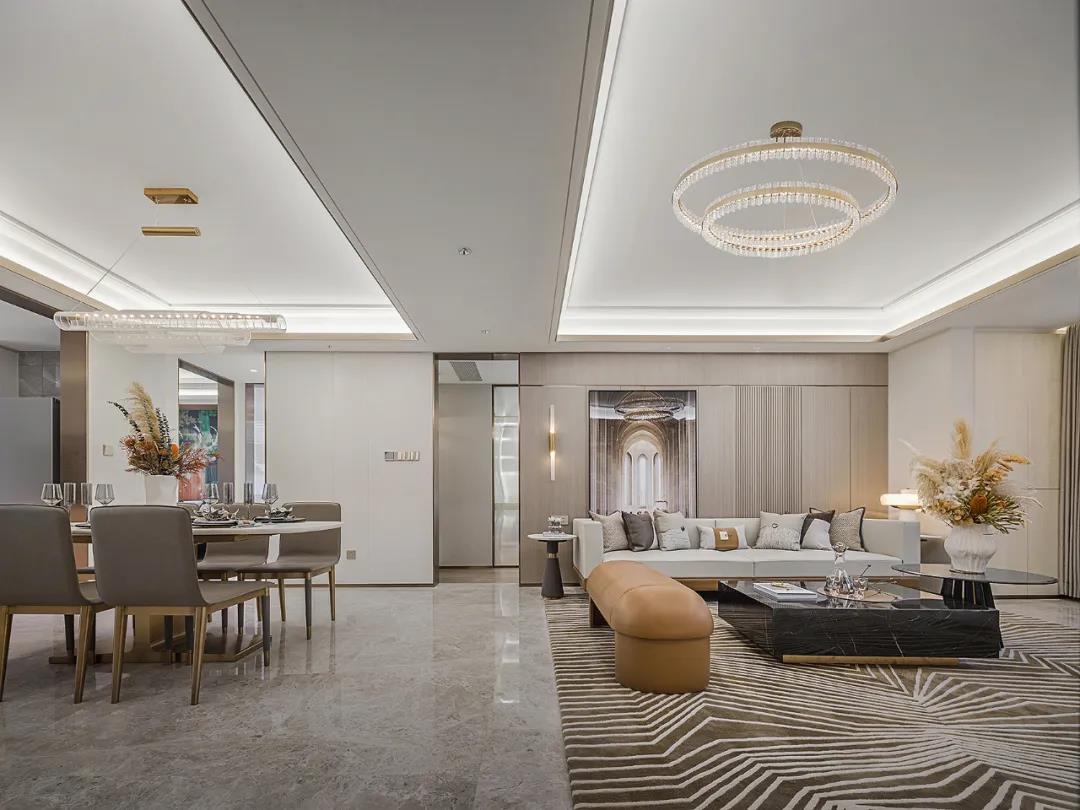 設計不止是營造空間,更是要通過一種理想生活的場域構建,觸及人們的精神世界。定位于高凈值人群的審美格調,設計在本戶型中,關照自然人文與藝術形式的結合,勾勒當代都市生活的儀式感,塑造雅奢精尚的空間氛圍。