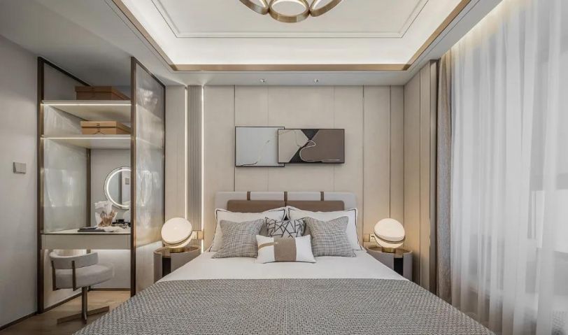 落筆于都市生活的藝術情致,設計運用深淺清透的設色、經典雅致的軟飾,令空間浸潤著美學的層次、人文的溫度、現代的簡雅。經典而大方、沉穩而低調,是設計為次臥空間所構筑的風格基調。在輕靈素雅、簡凈質樸的現代風格中,設計通過伸展的花枝,為空間增添一筆自然的氣韻,將雅致的人文氣息娓娓道來。