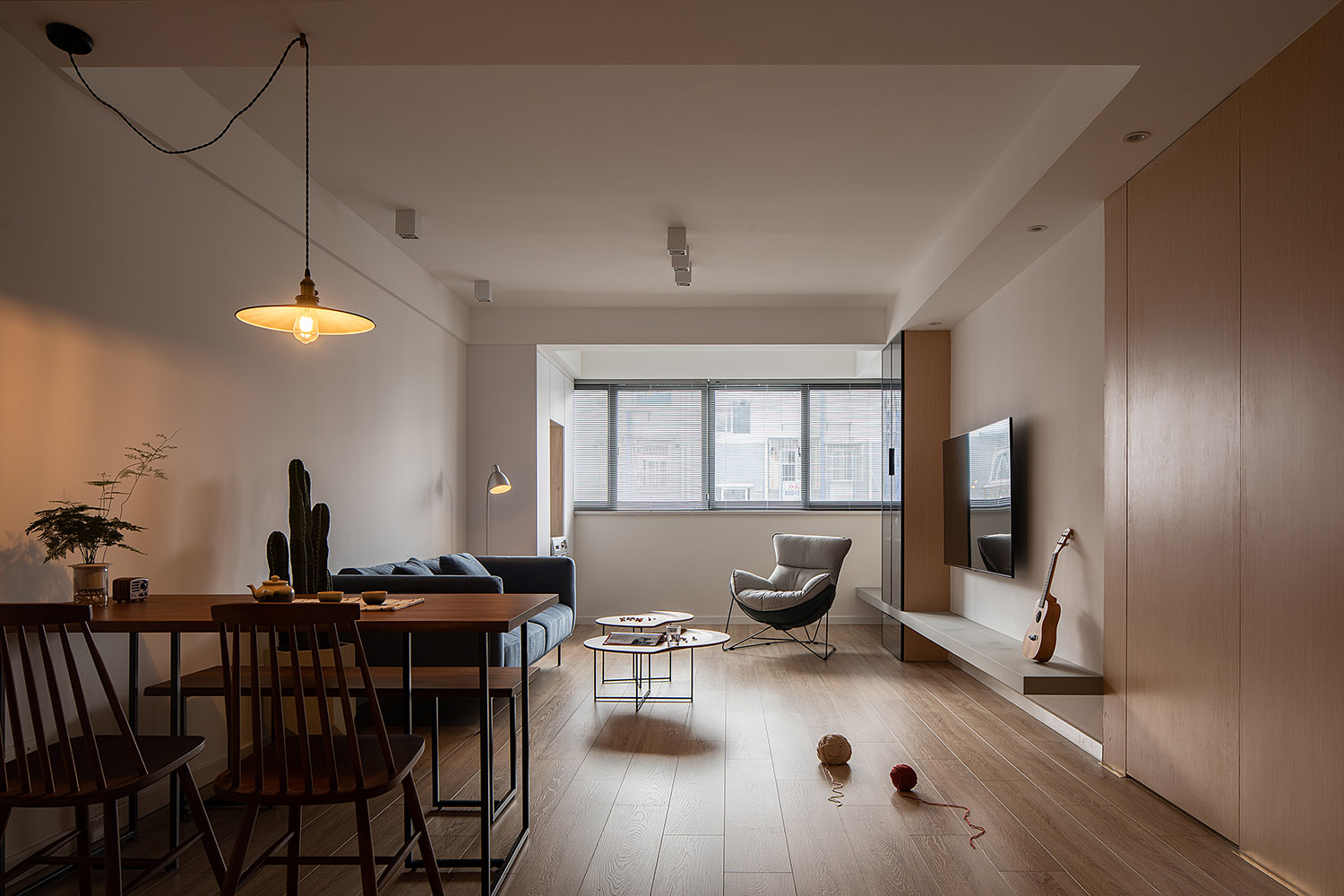 心安來源于空間氛圍,不在于裝飾。本案的業主是一對年輕的夫婦。經過溝通,設計師將他們對生活需求提煉,通過運用現代簡潔的設計手法,打造出舒適雅致的居家氛圍。