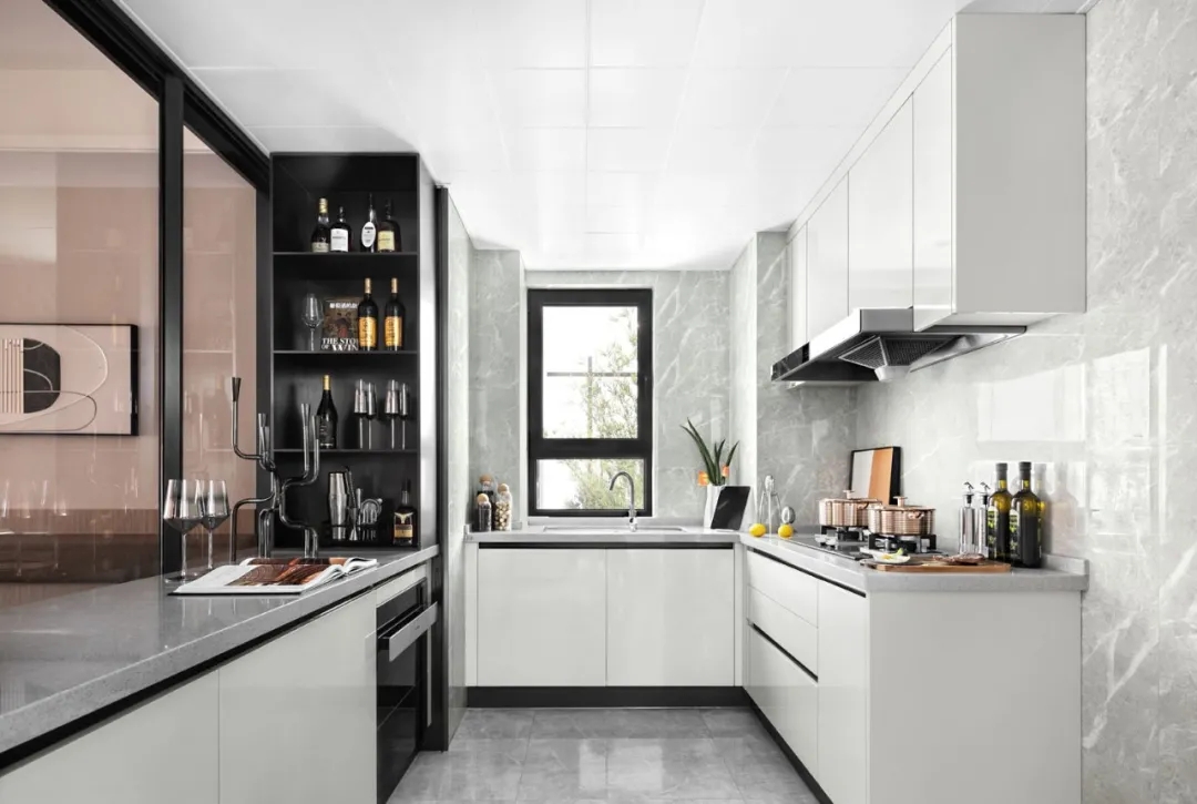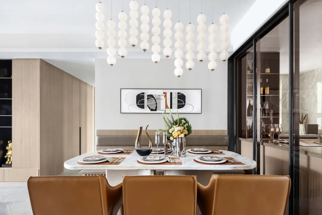 家是港灣,也是理想空間。通過細致的金屬線條紋理,淺色木以及皮革,配合精致的細節收口,使整體視覺更富開闊感。