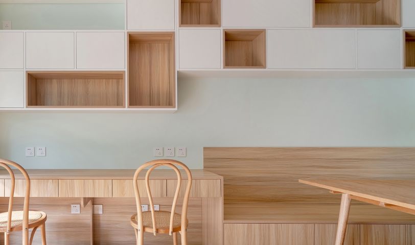 敞開式書房空間集合了多種功能,該區域采光通風都很好,更適合孩子在這個空間活動玩耍,學習。