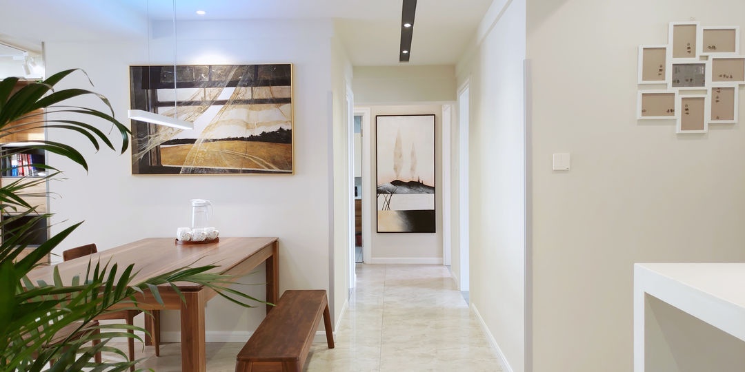 從玄關看向室內 玄關進門右手邊留有吧臺,進門后可以隨手臨時放置物品。