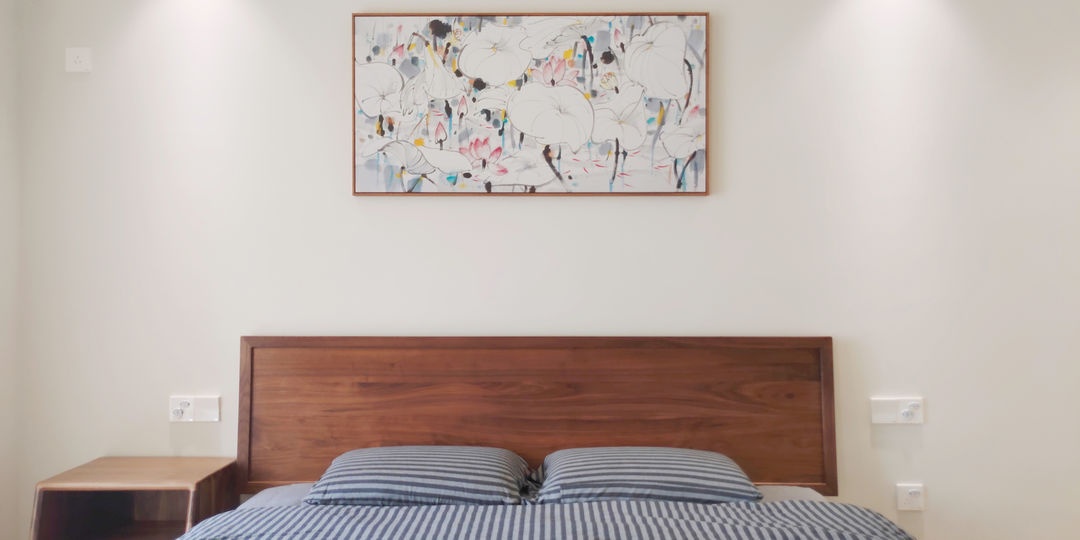 1.8m的胡桃木實木床。質感滿滿。其實家里真的不需要做那么多背景墻,節省下來的預算買好的家具,氣質滿滿。這個案子很多家具都是胡桃木的,在現場看真的很細膩的質感,照片沒辦法表現出來。
