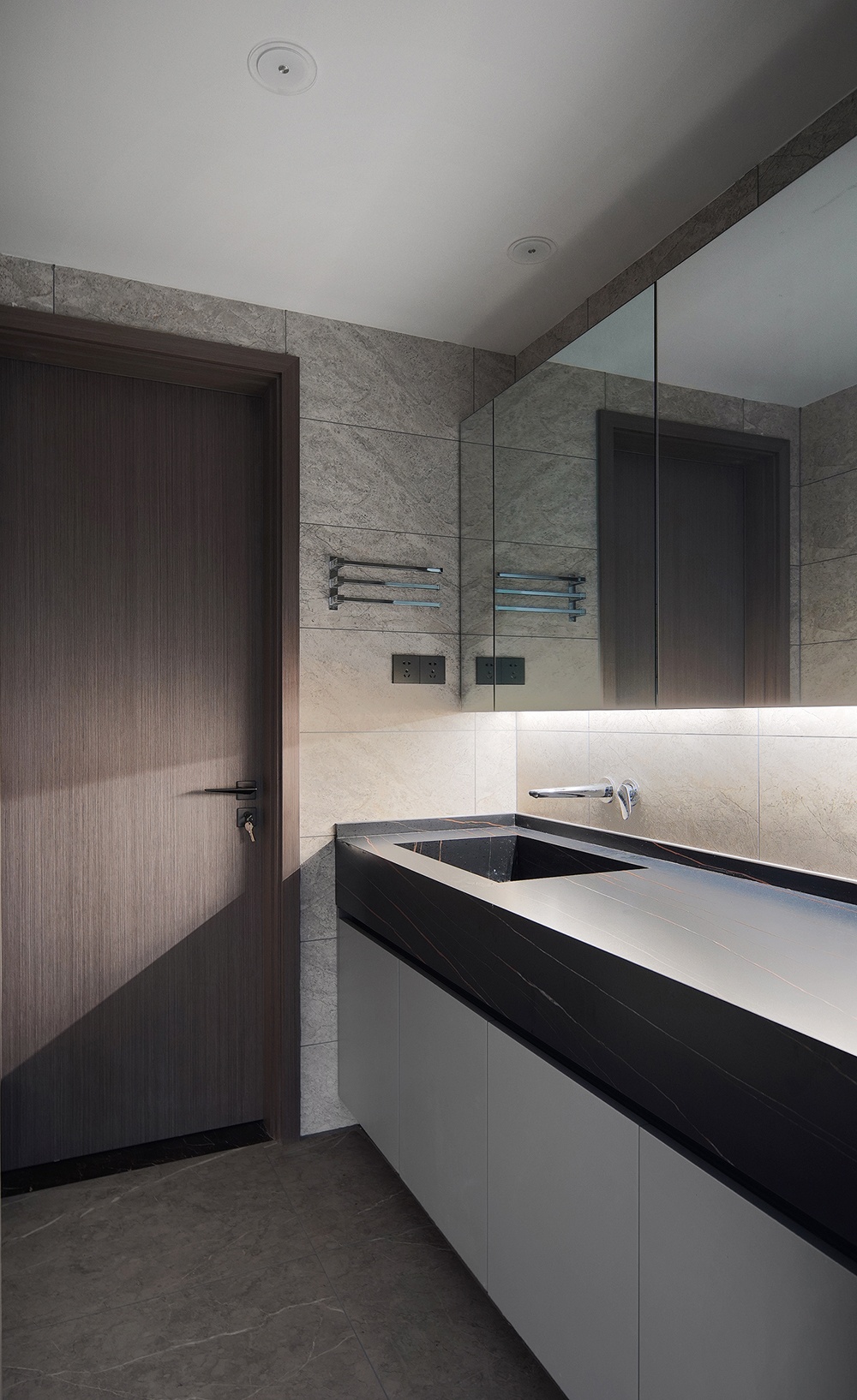 衛生間是白與灰的主場,清冷的色彩與布局帶來秩序感,簡潔的設計讓居住者在洗浴室中有更好的體驗。