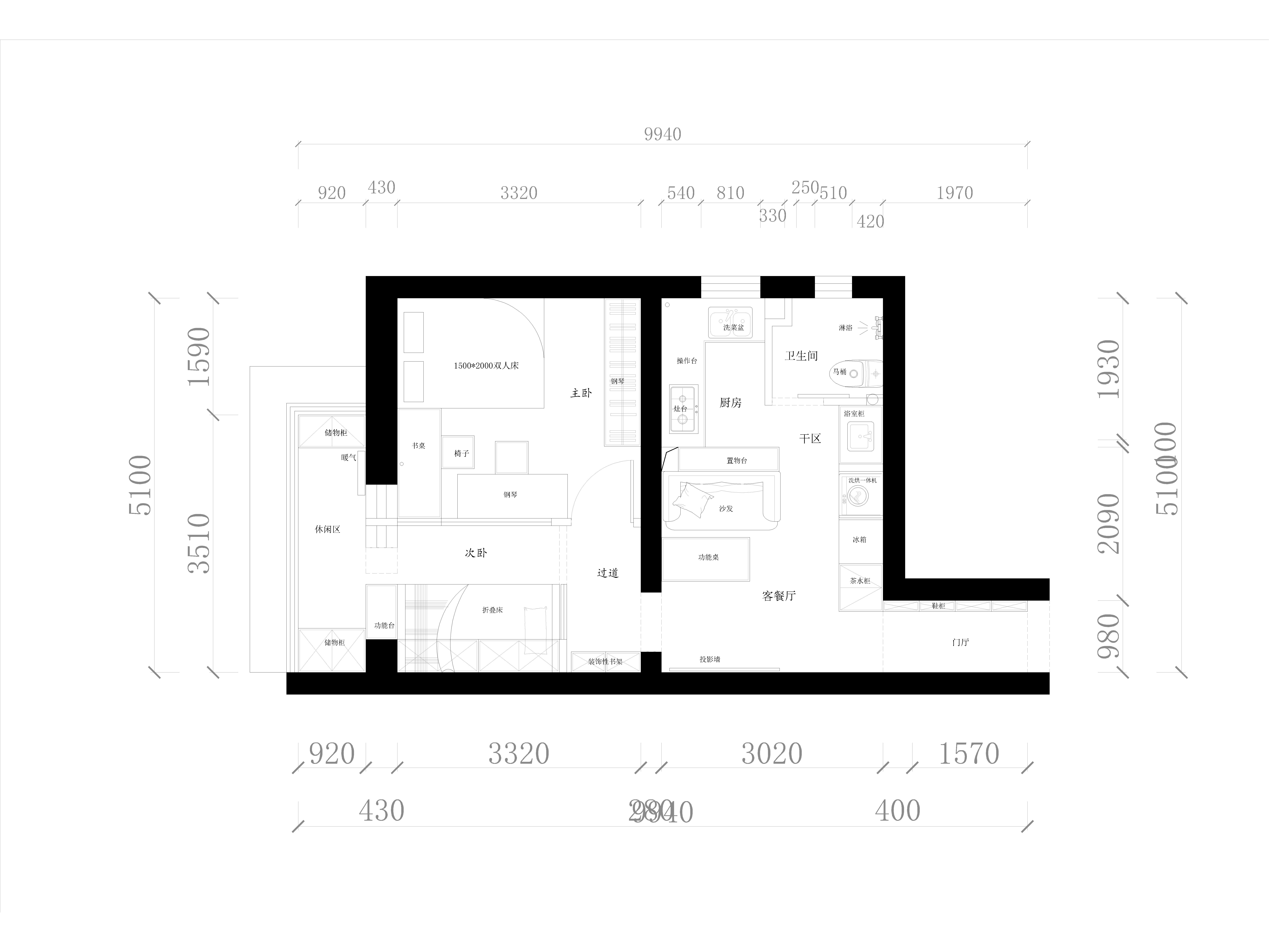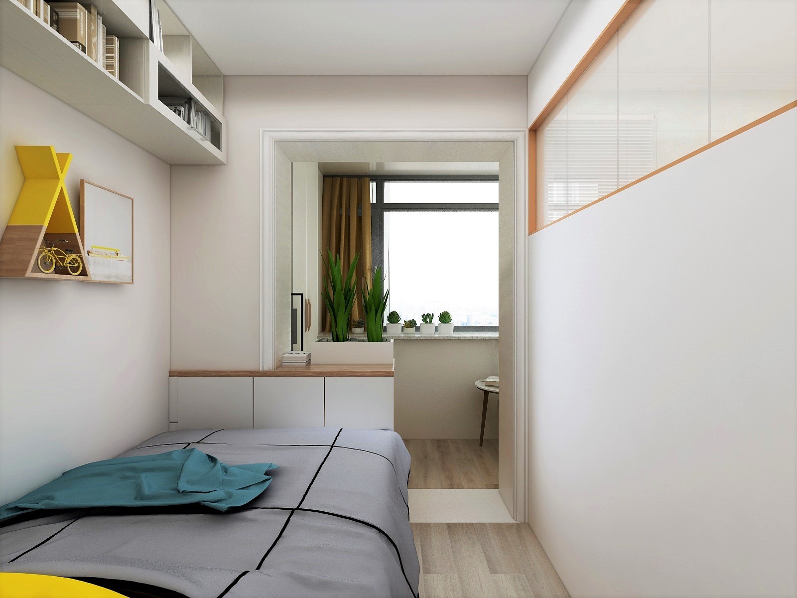 這是一個小一居室,客戶為將來孩子上學(xué)準(zhǔn)備的,需要給孩子一個獨(dú)立切有陽光的臥室。還需要單獨(dú)的客餐廳區(qū)域。根據(jù)客戶需求合理的給他規(guī)劃了室內(nèi)空間