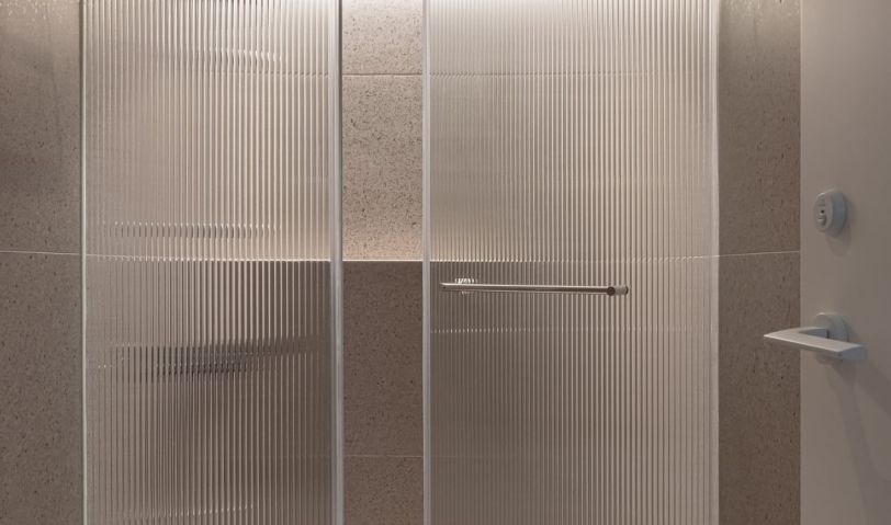 仿水磨石瓷磚給狹小的衛(wèi)生間帶來了延展,而且不易顯臟,長虹玻璃隔斷起到干濕分離的作用,同時也提升衛(wèi)生間的私密性。