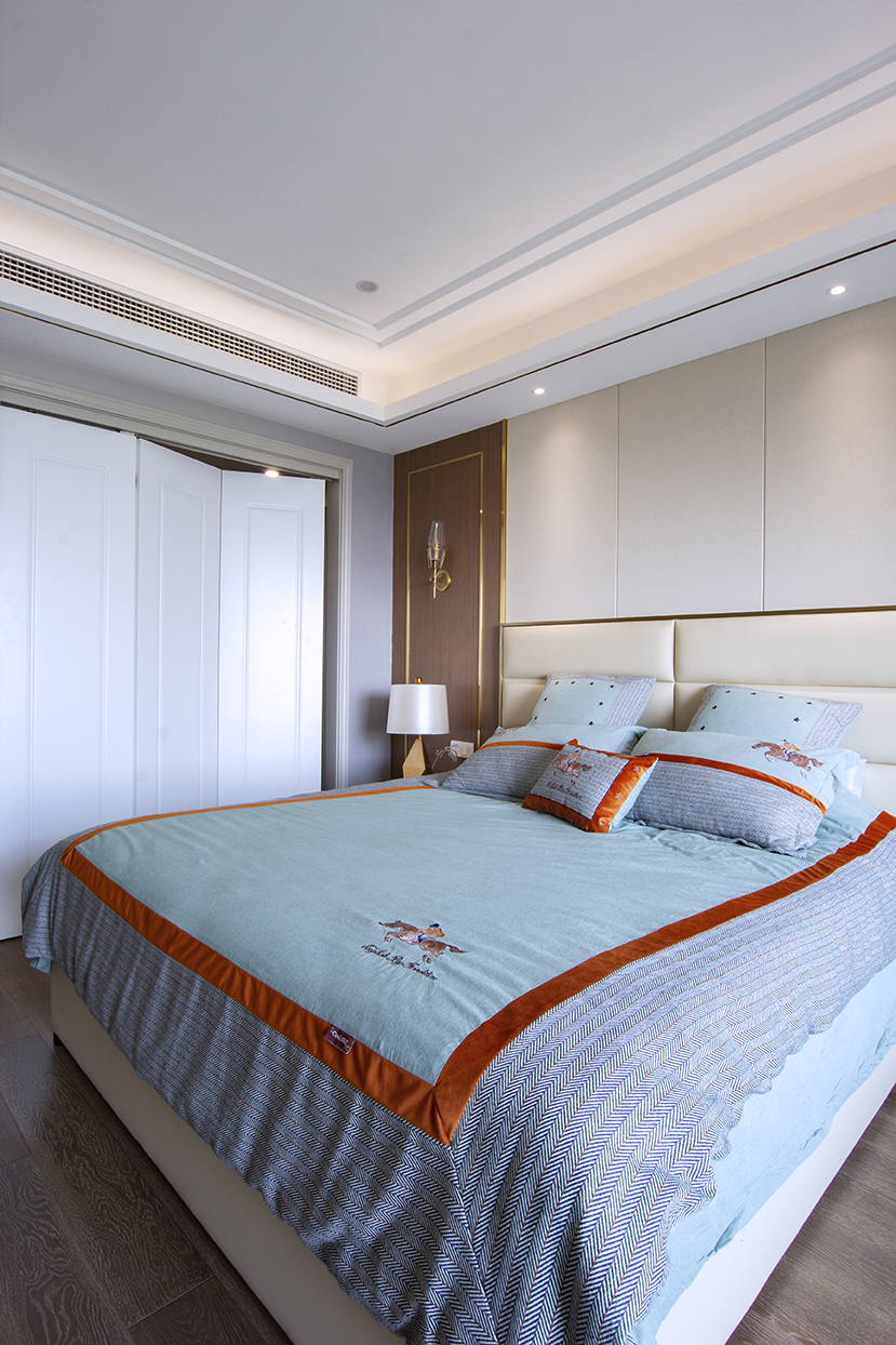 主臥把原來的陽臺包入了房間,里面做了整體式套房,有衣帽間和衛生間。