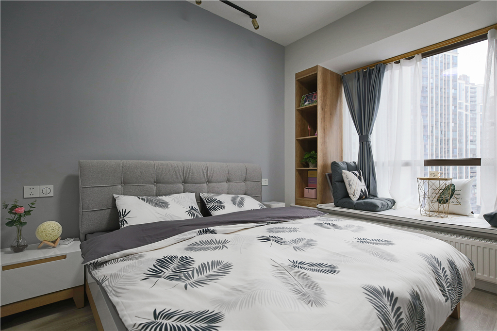 網癮少女琪琪,深受某音的影響,還是免不了對黑白灰工業風的向往,主臥的色彩和軟飾的搭配終于向高冷范兒妥協了,入目清泠,猶如一幅鋪開的水墨畫卷。