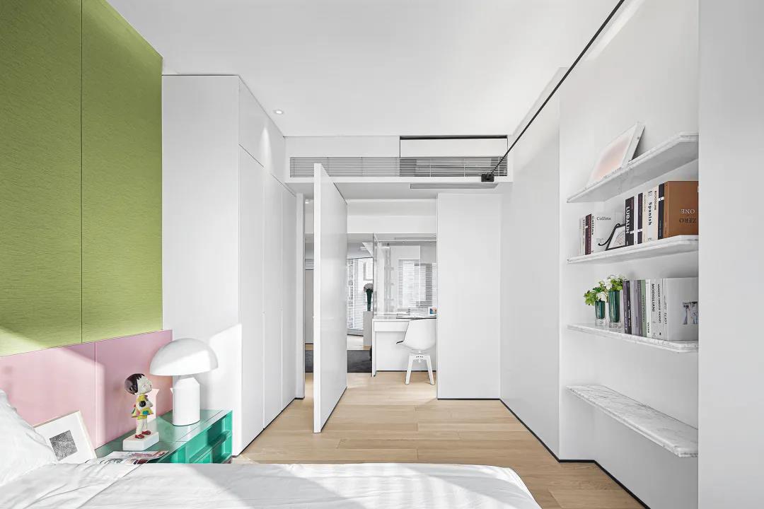 女孩房的背景墻采用清新的牛油果綠,以及具有少女心的淡粉色,兩者相結合,清新之中帶有一絲甜美,正是花季少女天真浪漫的顏色。