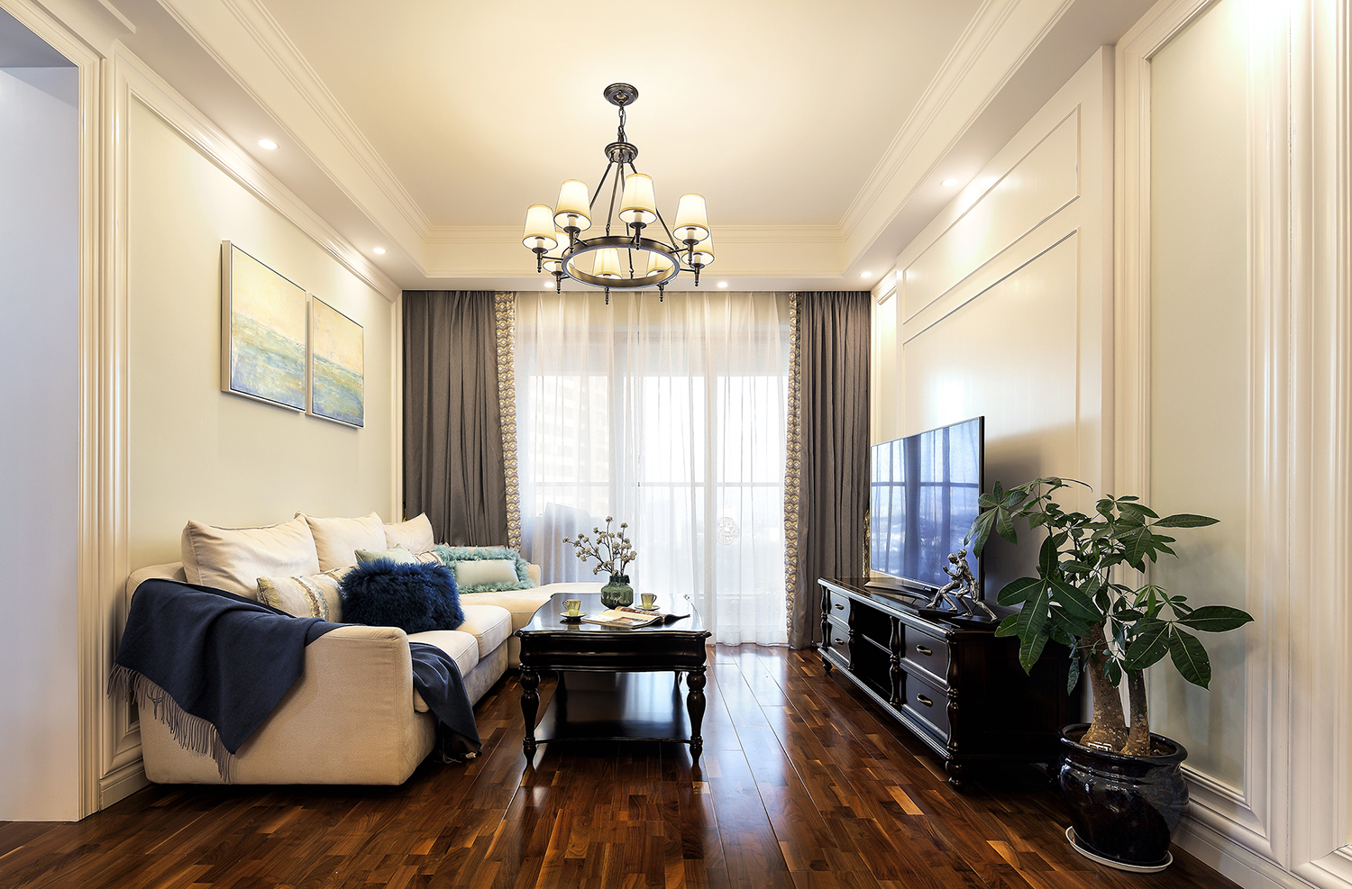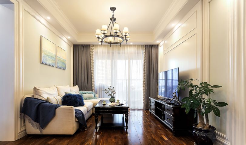 客廳的立面背景采用暖米色,立于小美式的休閑基調(diào)中,簡(jiǎn)單又統(tǒng)一,明亮又不失暖意,這也是業(yè)主最滿意的地方。生活在大都市,時(shí)尚的都市氣息免不了。用米白色沙發(fā),點(diǎn)綴無(wú)彩深色抱枕,特色鮮明又不落俗套。