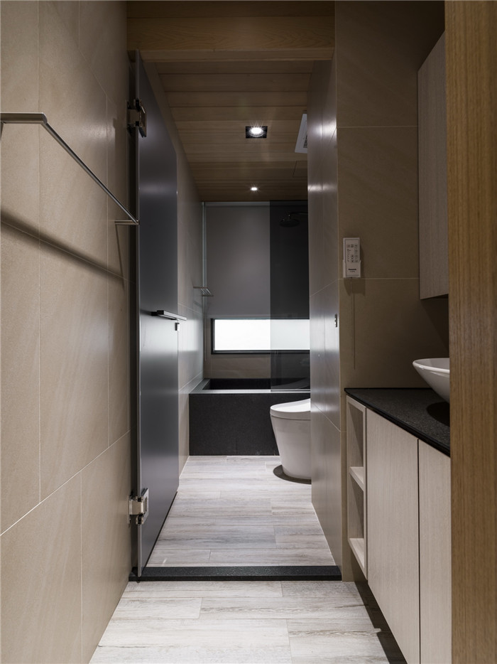 衛生間使用香檜木封頂,小空間洗浴時時可呼吸天然香氛,小居宅不將就的洗浴空間,泡澡、淋浴、智能馬桶一應俱全。