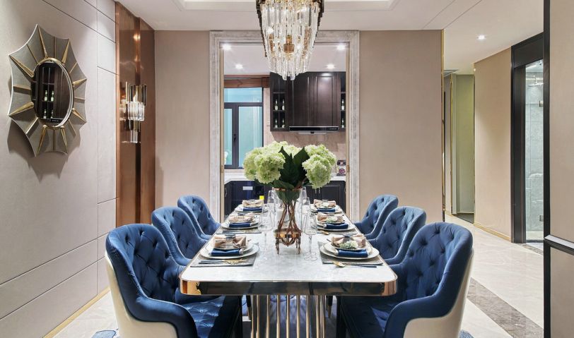 本項目圍繞當代歐式雅致生活倡導的人群生活方式展開,深色家私與淺色面料強烈而時尚,加入適當的色彩融合其中,加強空間的體驗感和參與感。雅致的幾何文理點綴以時尚的柳丁,舒適的絲絨材質則與雅致的香檳金金屬產生碰撞,點綴熱烈的顏色系花藝或飾品提升空間時尚的氣息,通過這些主打元素的連續性使用,以及材質層次豐富的打造,呈現出歐式雅致的時尚情懷。