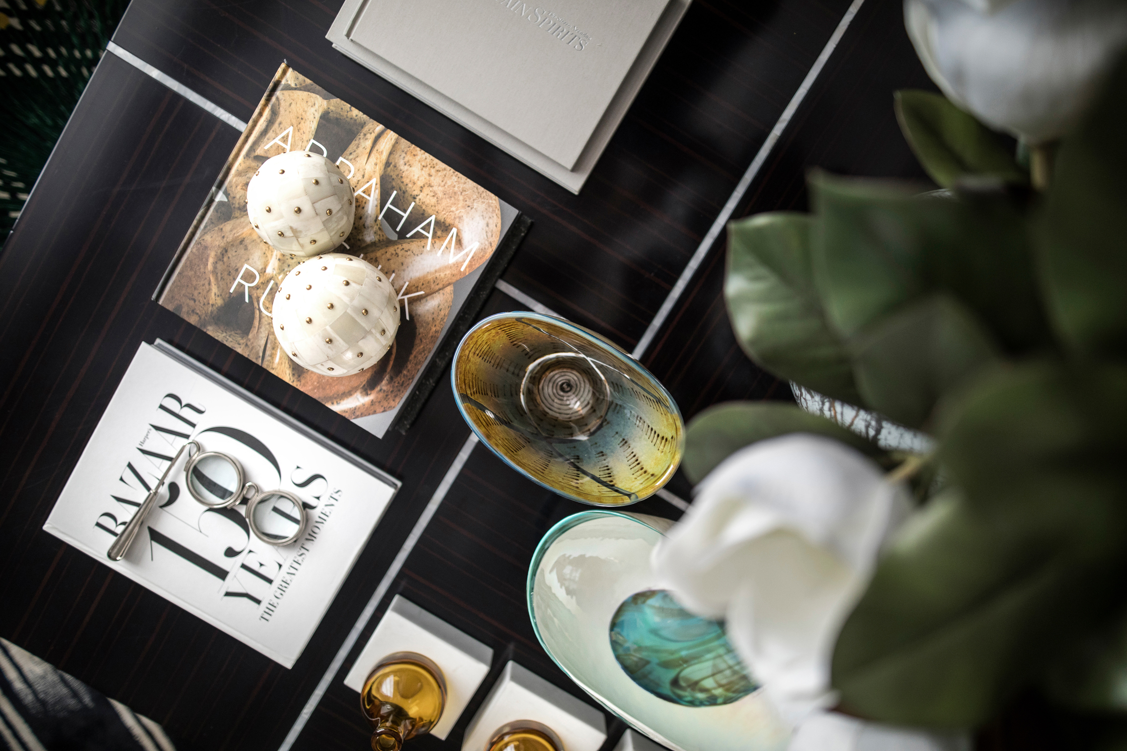 書房選用更沉穩的深色系,細部用些許金屬和亮色點綴,彰顯時髦的貴氣。