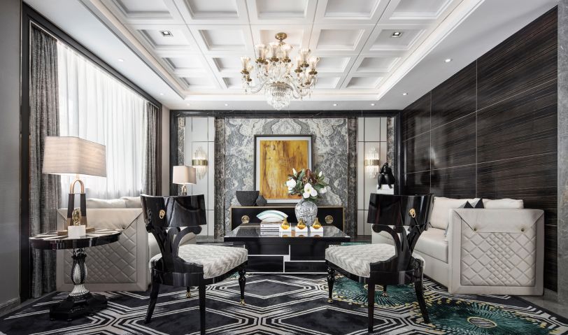 本案人物定位為喜歡古典格調也鐘愛當代藝術、深具文化涵養的高端客層,設計風格將新古典的高貴與當代品味的質感生活相互交融,空間以考究的軟裝細節、精粹奢華的材質搭配和富有激情的藝術主題,詮釋兼具古典和摩登的當代居住范例,傳遞典雅的藝術人文美感。