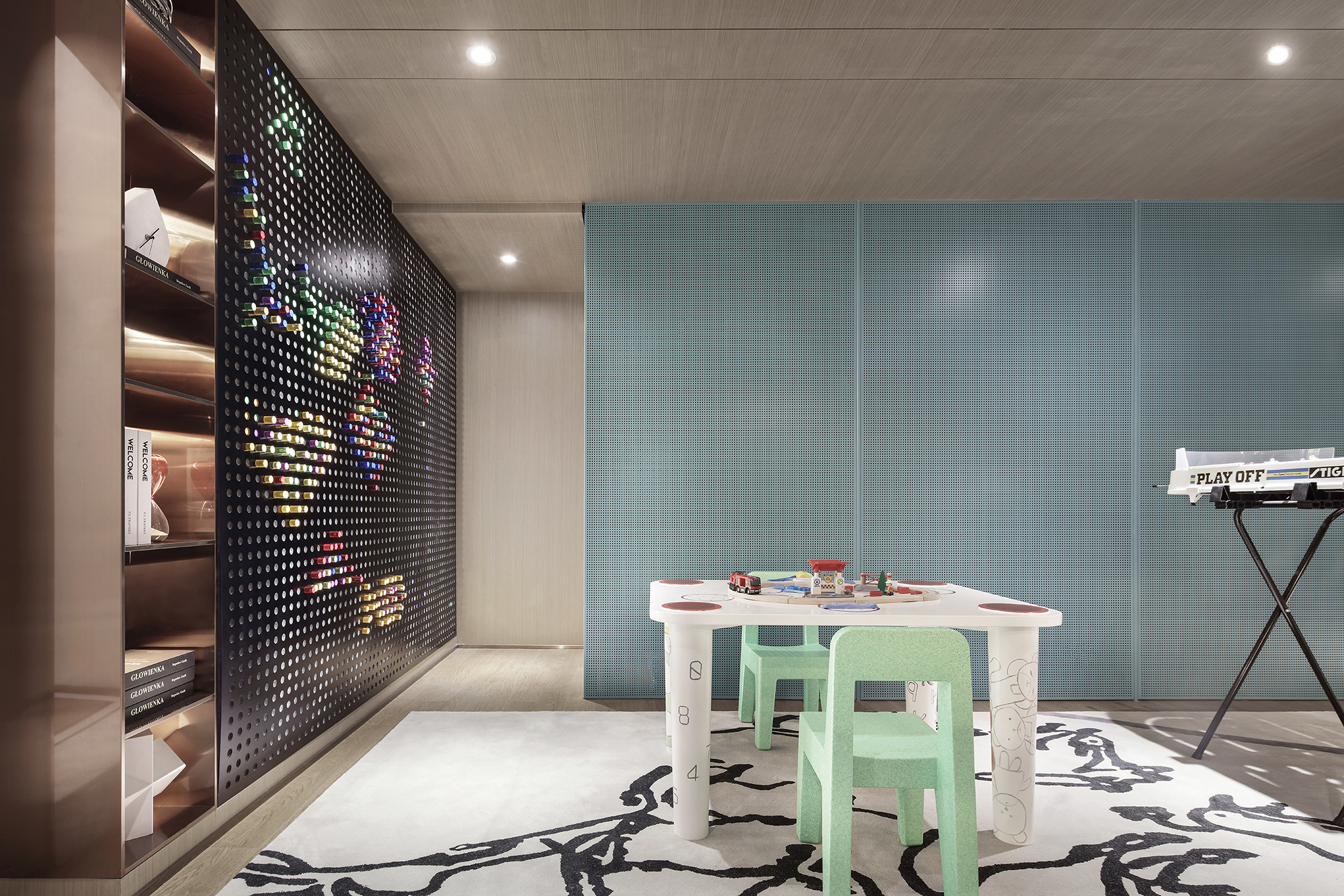 以人、空間、時間的相對關系作為思考延伸,審慎探究其背后所承載的居住方式。布局和組織基于親子情感需求特點,注重空間的滲透與分隔,以現代設計語匯,結合動感生機的標識,營造靈動天地。