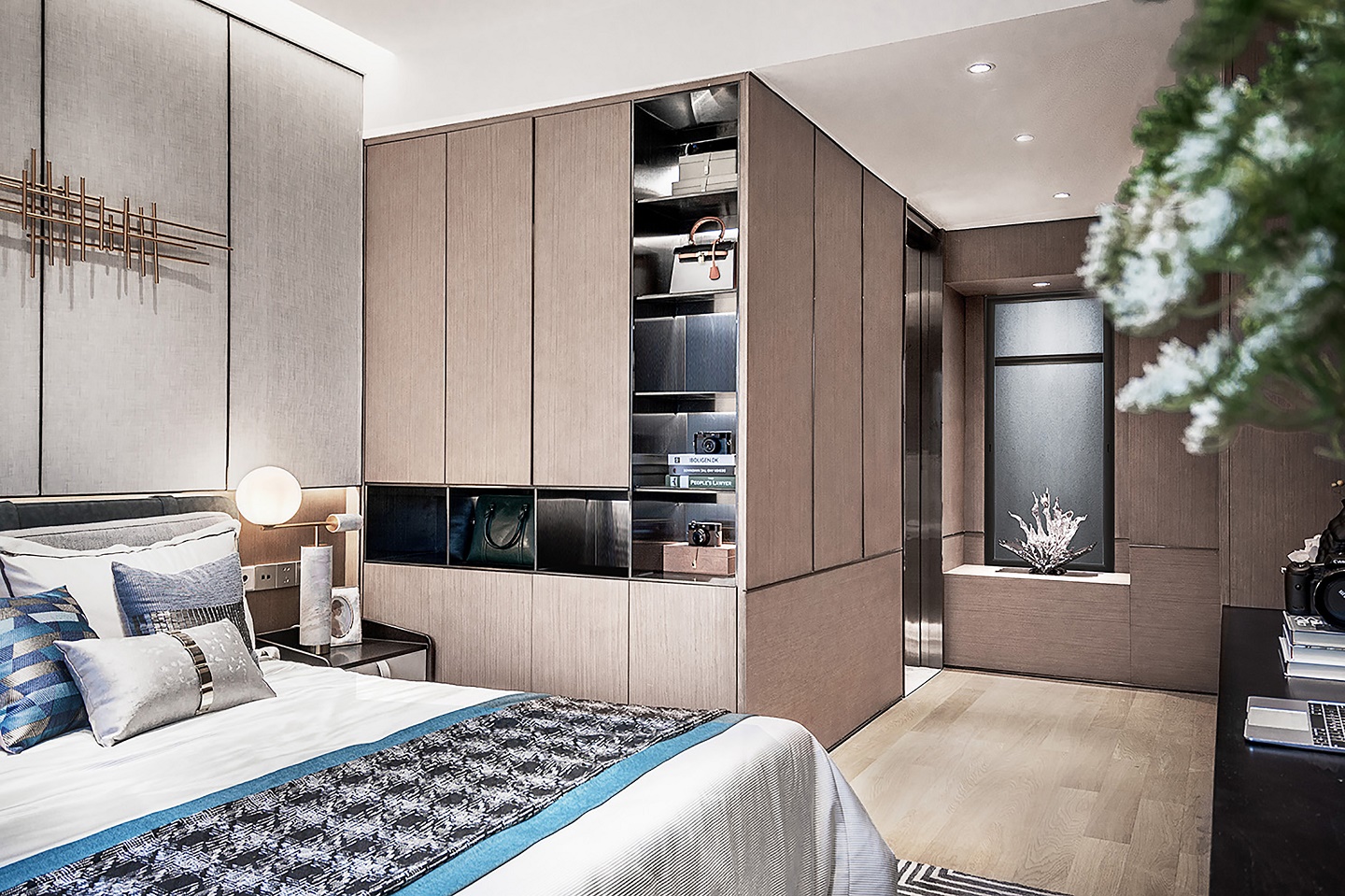 怡情自然,窺見另一方天地,邃將人文底蘊、自然環境、品讀與見解蘊藏在作品當中,最后跟隨現代審美的腳步,賦予了空間清透明亮的風韻。通過對空間結構和比例的細致推敲,多種現代材質的巧妙兼糅,憑借豐富的色彩、層次搭配,呈現出視覺交織的美感。