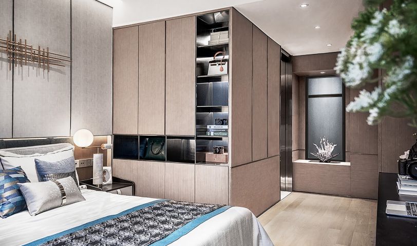 主臥摒棄繁冗復雜的技巧,陳設氛圍充滿生活氣息,轉角式衣柜、獨立式衛浴、充裕的行動空間,簡單舒適。床頭造型輔以金色系修飾,增添幾絲深意,讓生活和質感達到平衡。