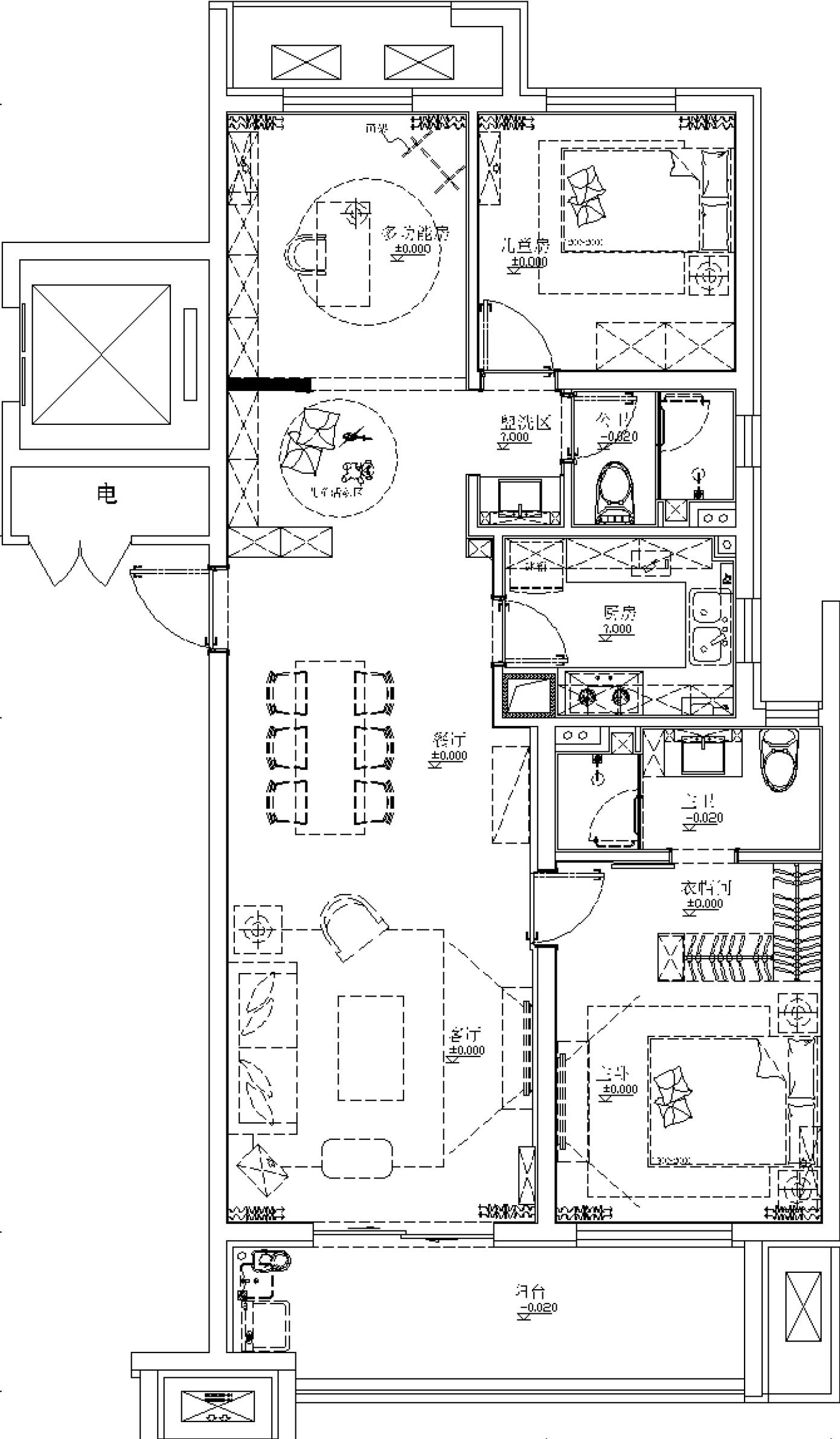 溫馨和樂的一家三口:成熟有品位的企業(yè)家,蕙質(zhì)時尚的女主人,可愛充滿好奇心的小女兒,延續(xù)庭院的中式建筑元素,于空間內(nèi)引入東方雅韻氣息。
