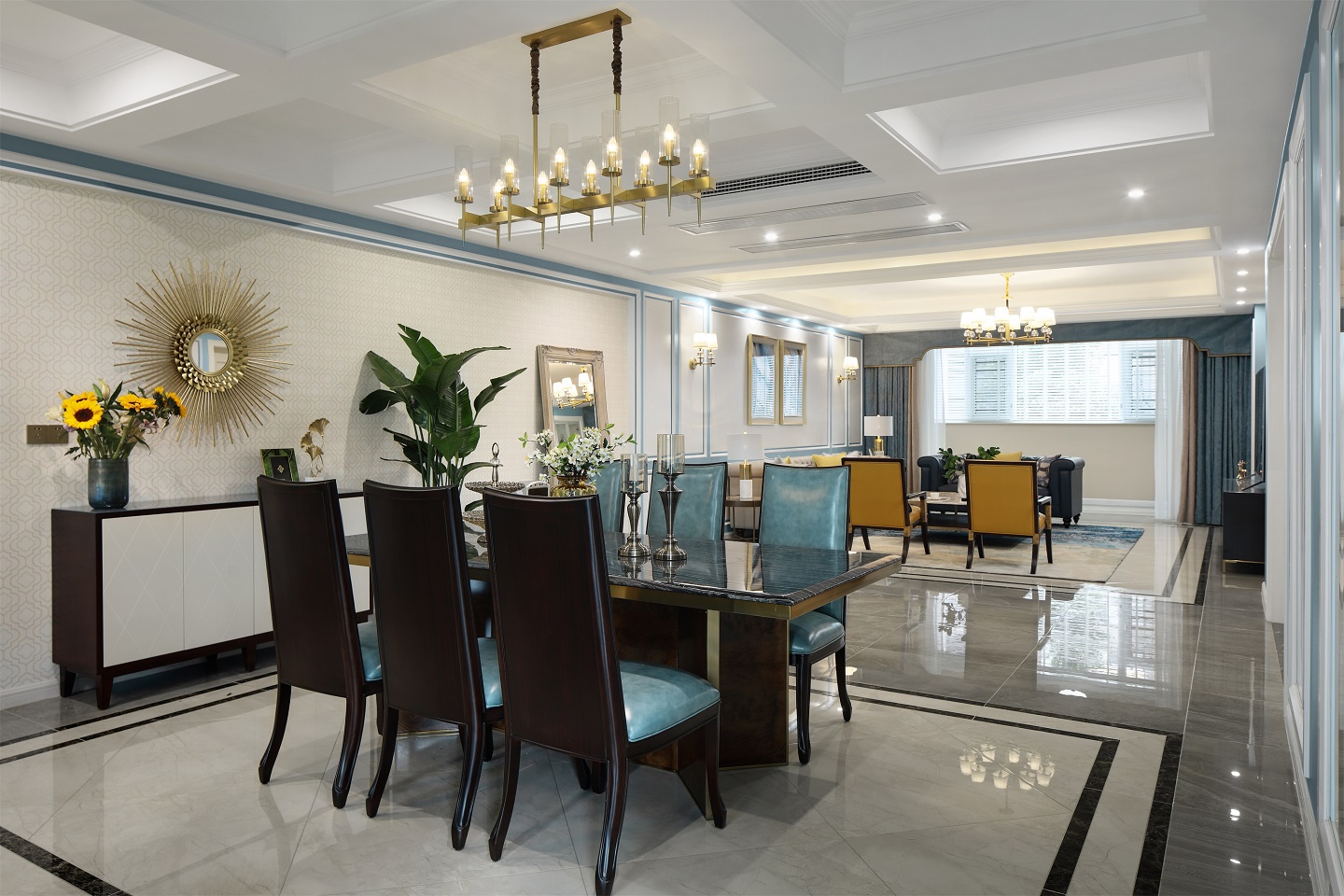 軟裝以色彩恣意穿梭空間,清淺的馬卡龍藍賦予空間以生命力,少了一般家居軟裝設計中的中性調與冷靜質感,卻多了一份法式的清新優雅,甚至還游弋著一絲溫馨甜膩的味道