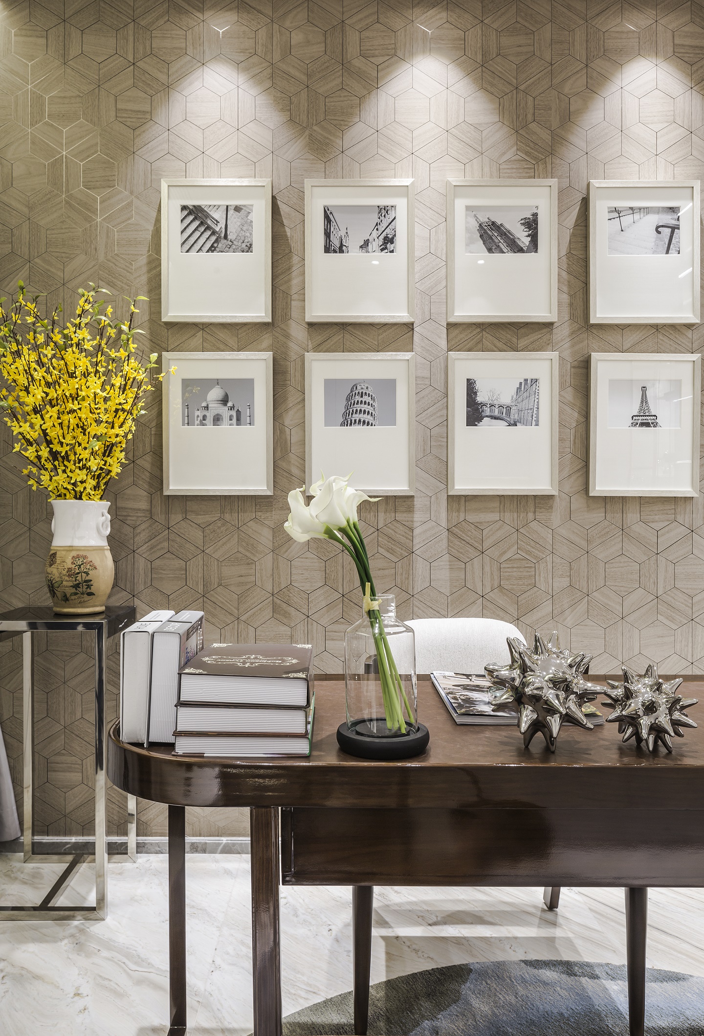 布藝與皮革在別致燈具的襯托下,與云石臺面相映相稱,有如藝術品般,點綴空間的浪漫香氛,給予了空間更多的想象藝術。一種簡約低調的奢華、一種高級雅正的美悄然降臨期間。