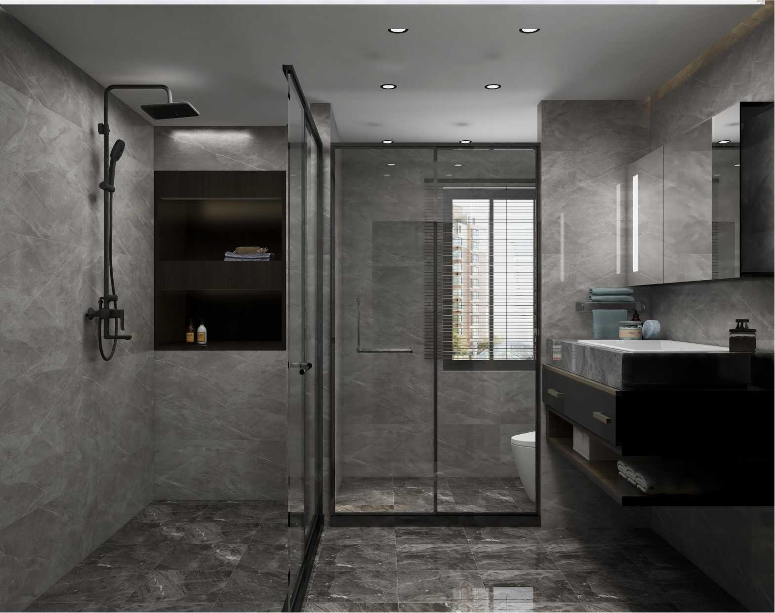 衛(wèi)生間整體以深色系為主