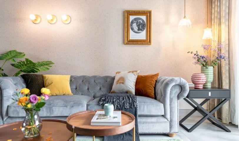 90平米的剛需性房屋中,整體空間以現代風格的設計搭配,在空間內加入大量色彩繽紛的設計元素,混搭出一種華麗高級的空間感,在精致浪漫的細節元素搭配之下,也營造出了一種高級優雅的空間體驗。