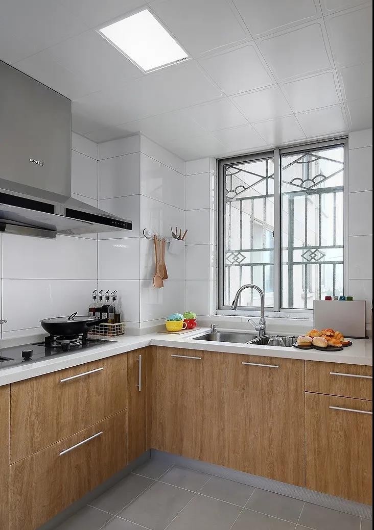 廚房也加上原木色,與客廳廚房統一。