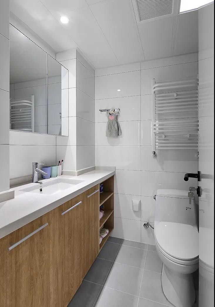 原木色的設計貫穿全家的每個角落,衛生間也不例外,帶給人輕松愉悅的氛圍。