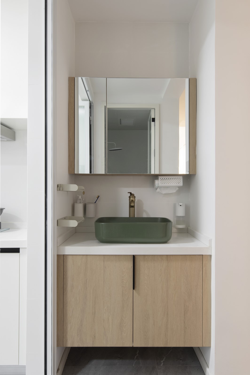 將原始的衛(wèi)生間一分為二,洗漱臺(tái)外移,干濕分區(qū)。輕松滿(mǎn)足上班高峰的洗漱問(wèn)題