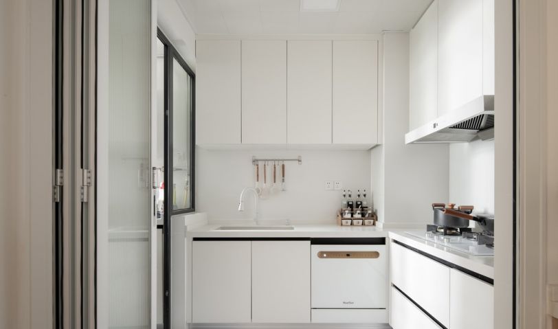 廚房使用純白色的櫥柜及墻磚,盡顯干凈溫馨。地面使用淺灰色地磚,耐臟好打理。墻面使用白磚并做同色美縫,使墻面看起來(lái)更加整體統(tǒng)一。適合非常適合愛(ài)干凈的屋主