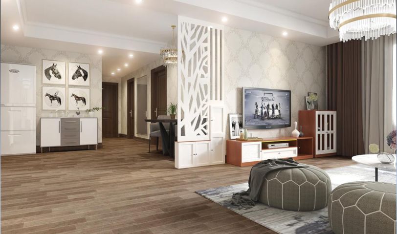 客廳的地板以胡桃木為主調(diào),展現(xiàn)一個休閑且質(zhì)感的氛圍,沙發(fā)背景墻處理相當(dāng)簡潔而富品味,裝飾畫提升空間的豐富度,展現(xiàn)出的是港式家居風(fēng)格。追求溫馨、平靜、安逸的暖白系貫穿主題。