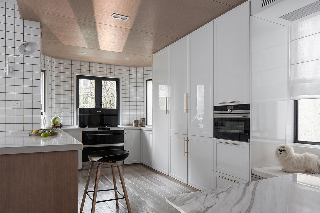 白磚木頂,做飯猶如置身室外,一體櫥柜定制,儲物功能強大