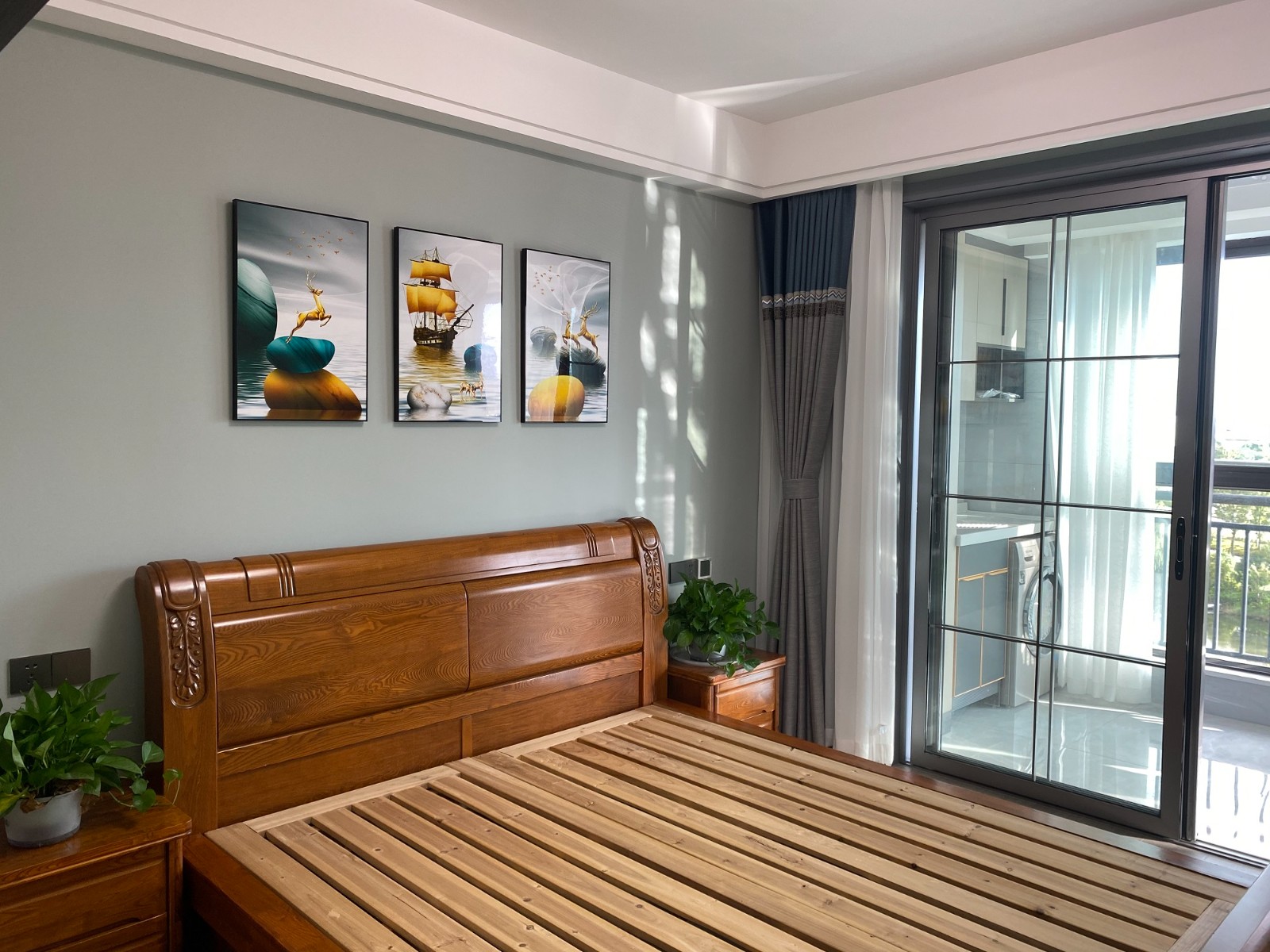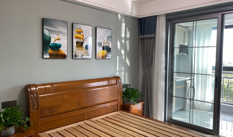 淺綠色的床頭背景,幾幅優雅的藝術畫,讓整個睡眠空間化繁為簡