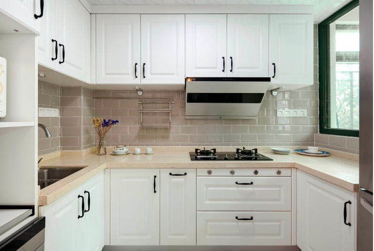 廚房采用米白色調(diào),時尚,美化視覺效果