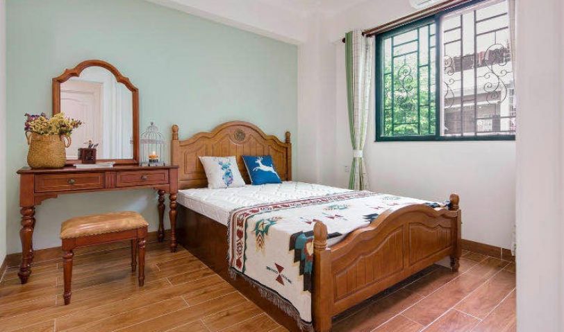 客廳采用暖色調(diào)墻漆,客廳墻面留白沒做過多裝飾
