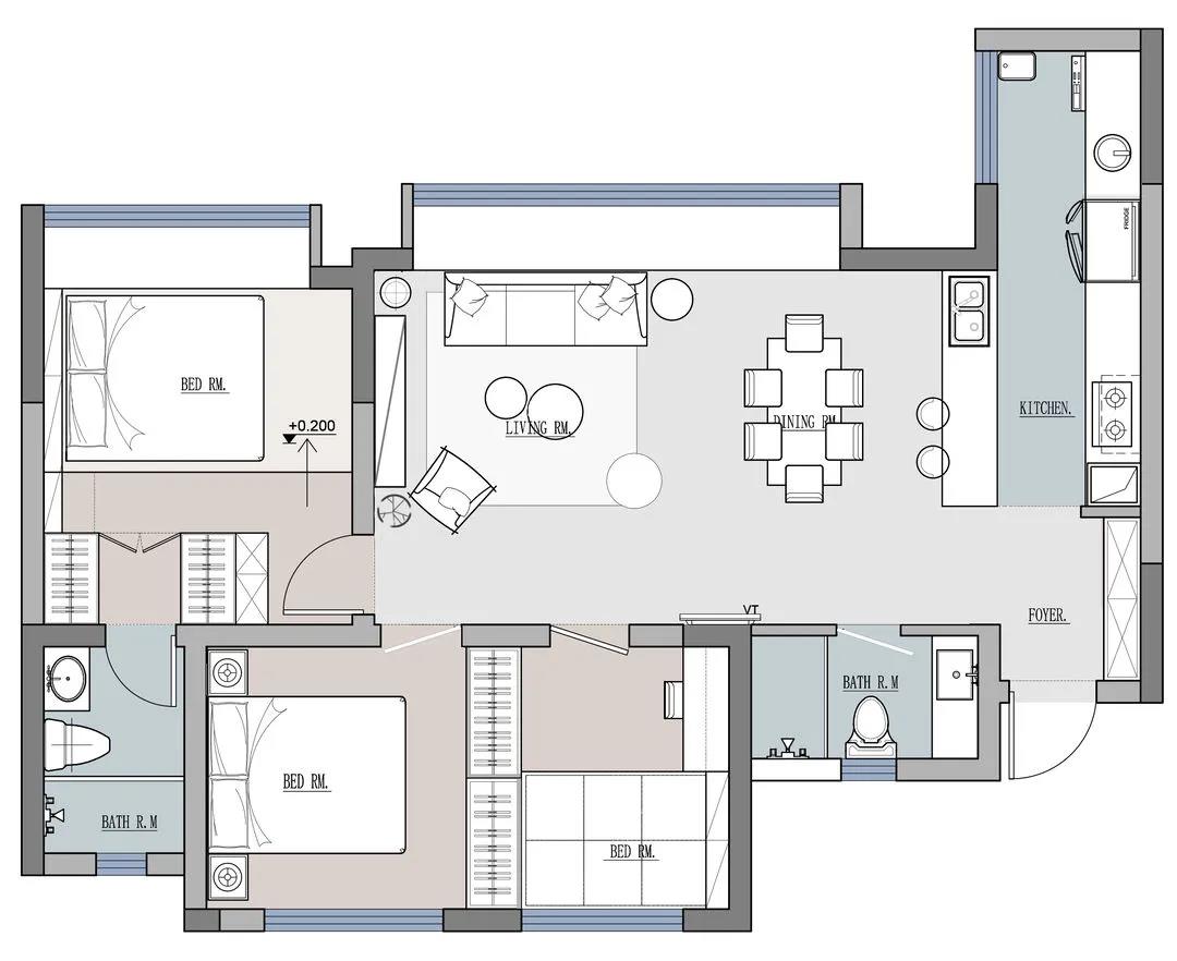 主沙發則置于靠窗位,更好的享受陽光的同時,相比橫放于客餐廳之間,空間更為開闊。