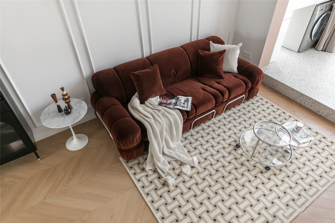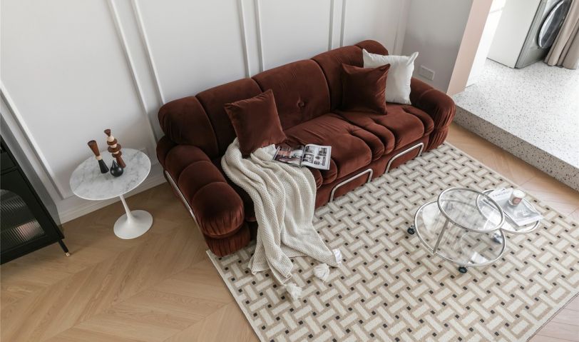 石膏線造型搭配酒紅色沙發,這是女主人的最愛