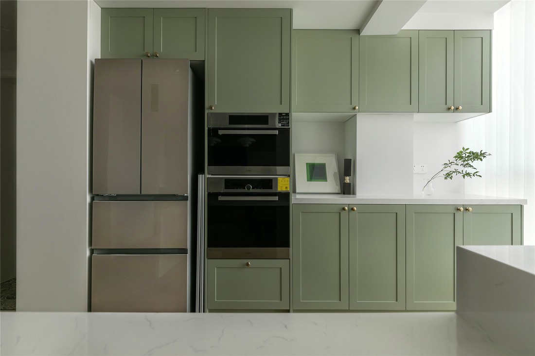 設計從傳統的廚房結構里跳脫出來,將嵌入式家電與櫥柜結合