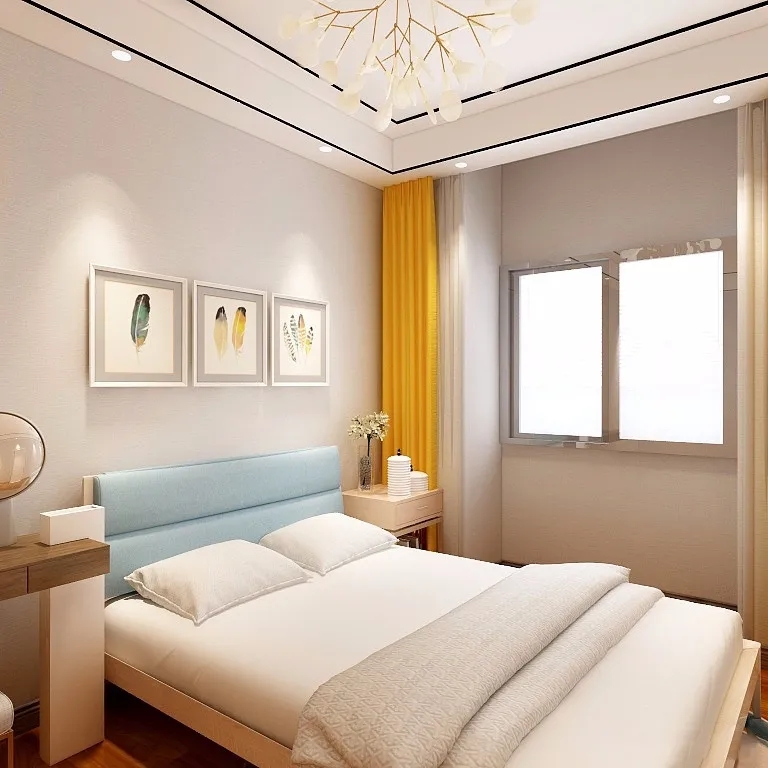 第二個就是家具樣式和顏色,主要體現簡單簡約木紋和白色搭配,沙發布藝經典款為主,