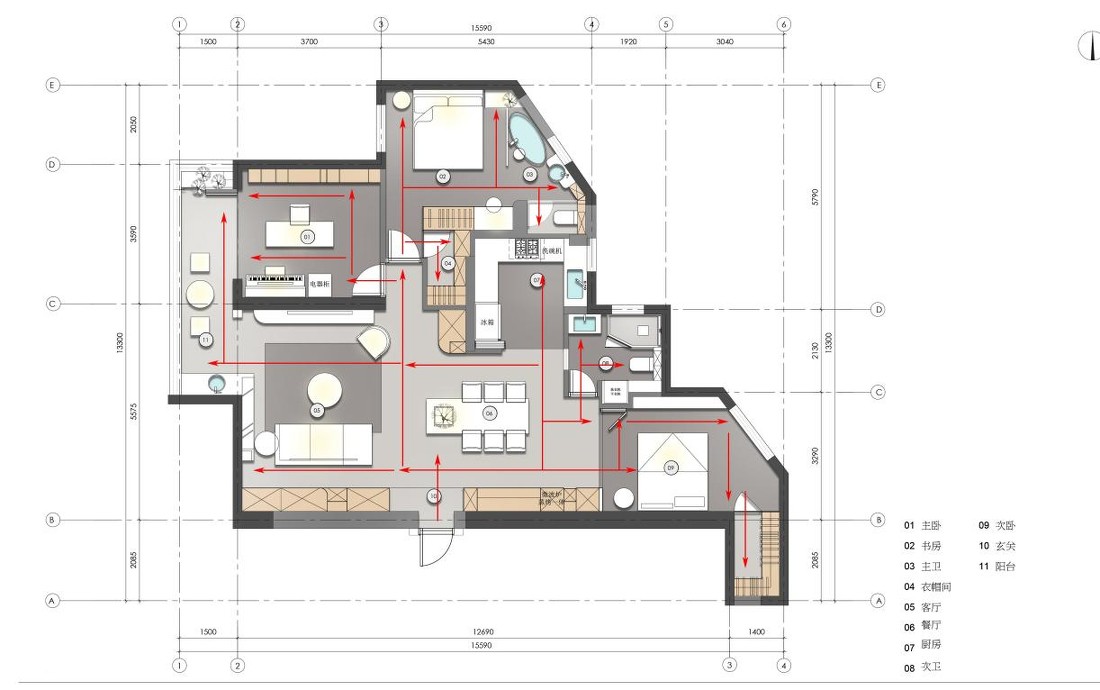 | 案例名稱 | 現(xiàn)代侘寂 | 戶型 | 三居室 | 案例面積 | 130㎡ |