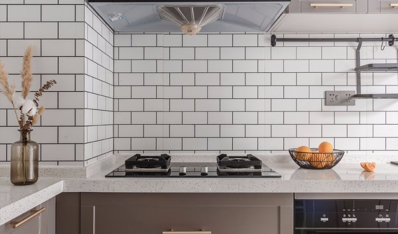 棕色的櫥柜白色的網(wǎng)紅磚,簡潔大方