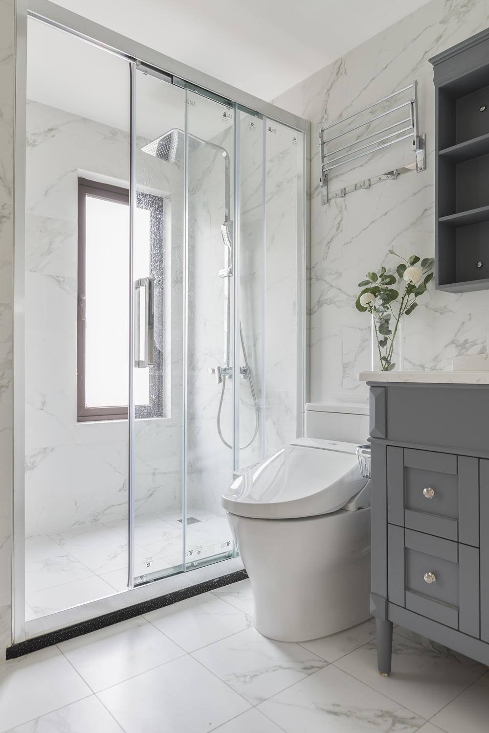 主衛的整體效果感覺上與主臥大體相同,整體感覺都是比較簡單素雅,不失豪華。智能馬桶搭配淋浴房,功能分區格外分明。以便于后期的使用需求,互不干擾。