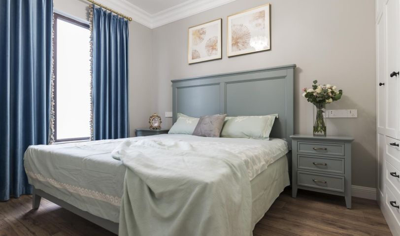 客房作為一個不常用的房間,相對主次臥就更加的簡單隨意了,墻面沒有做任何造型,只是簡單了掛畫來裝飾搭配。此臥室兼備的是客房以及偶爾老人過來住的作用,所以沒有做復雜或者過多的造型。