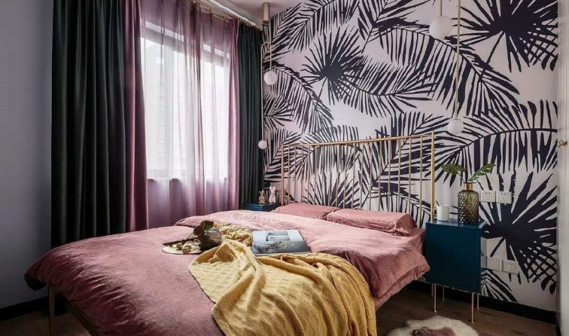 粉色的床搭配粉色的窗簾