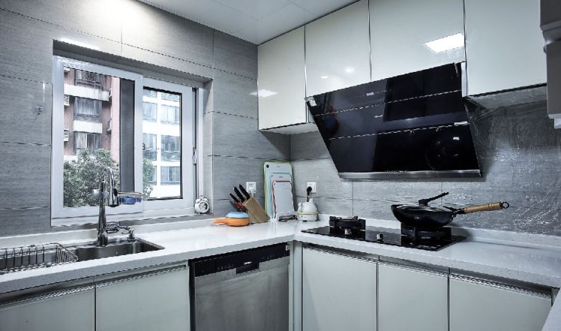 廚房空間不大,通過設計,該有都有,顏色搭配運用淡色,敞亮干凈整潔。